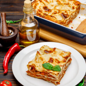 Zutaten: (A), frisches Basilikum, Tomatensauce